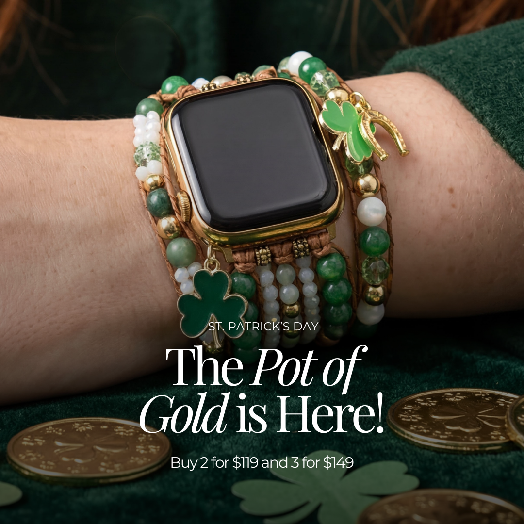 Cada día es una oportunidad para elegir lo que resuena contigo. Celebra el Día de San Patricio explorando nuestra colección de Nuevas Llegadas. Más allá del estilo, cada correa de reloj está cuidadosamente elaborada con materiales duraderos y piedras significativas, diseñadas para acompañarte en tu camino, dondequiera que te lleve el arcoíris. 🍀🌈